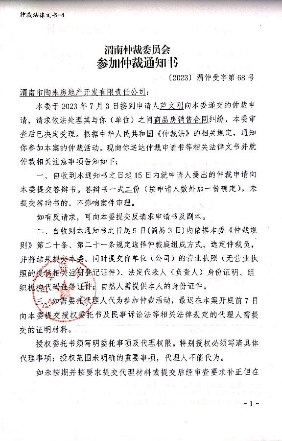 蘆文剛與渭南市陶朱房地產開發(fā)有限責任公司一案公告