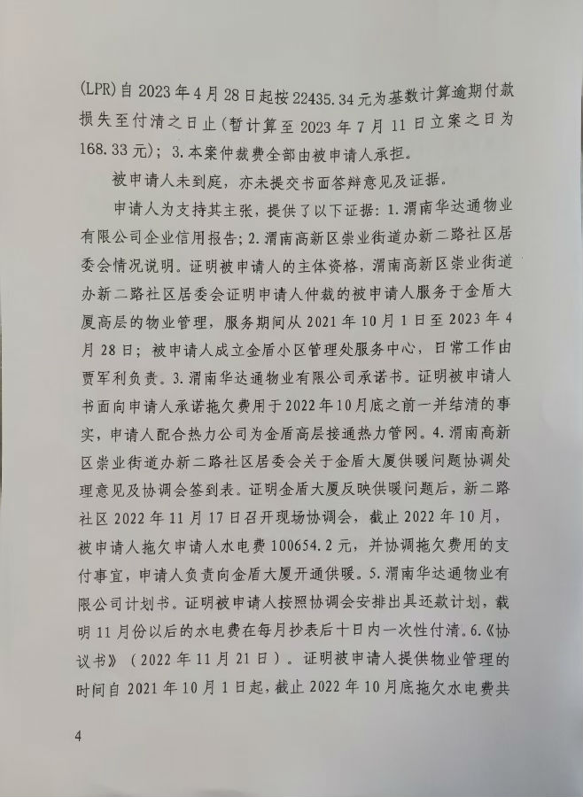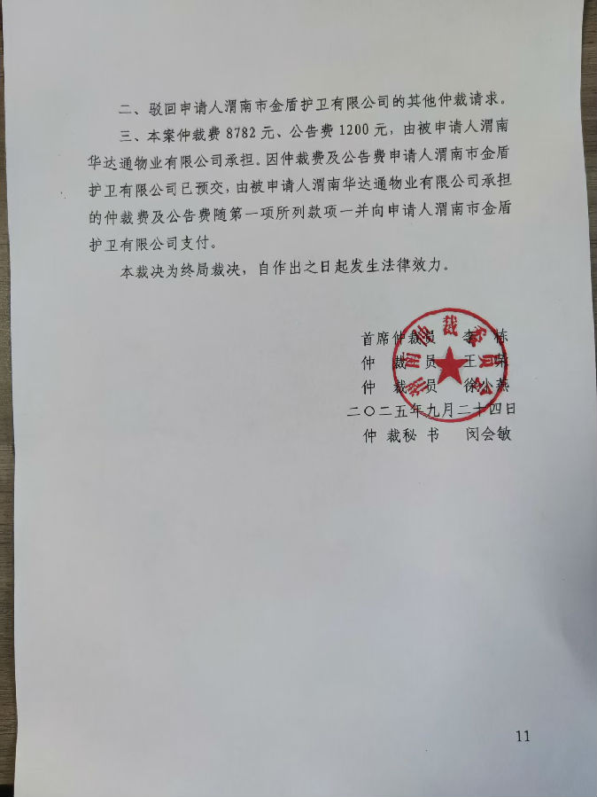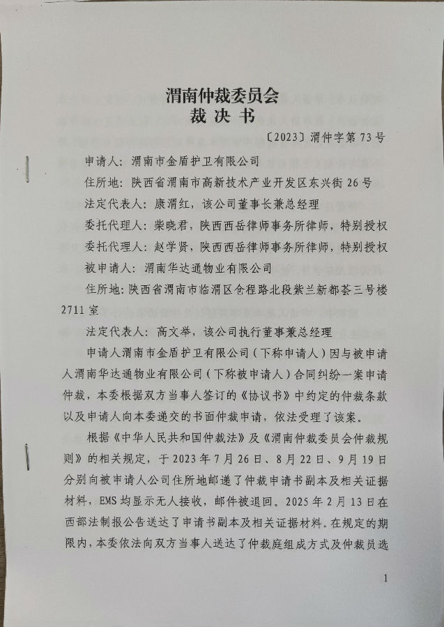 渭南市金盾護衛(wèi)有限公司與渭南華達通物業(yè)有限公司合同糾紛案公告